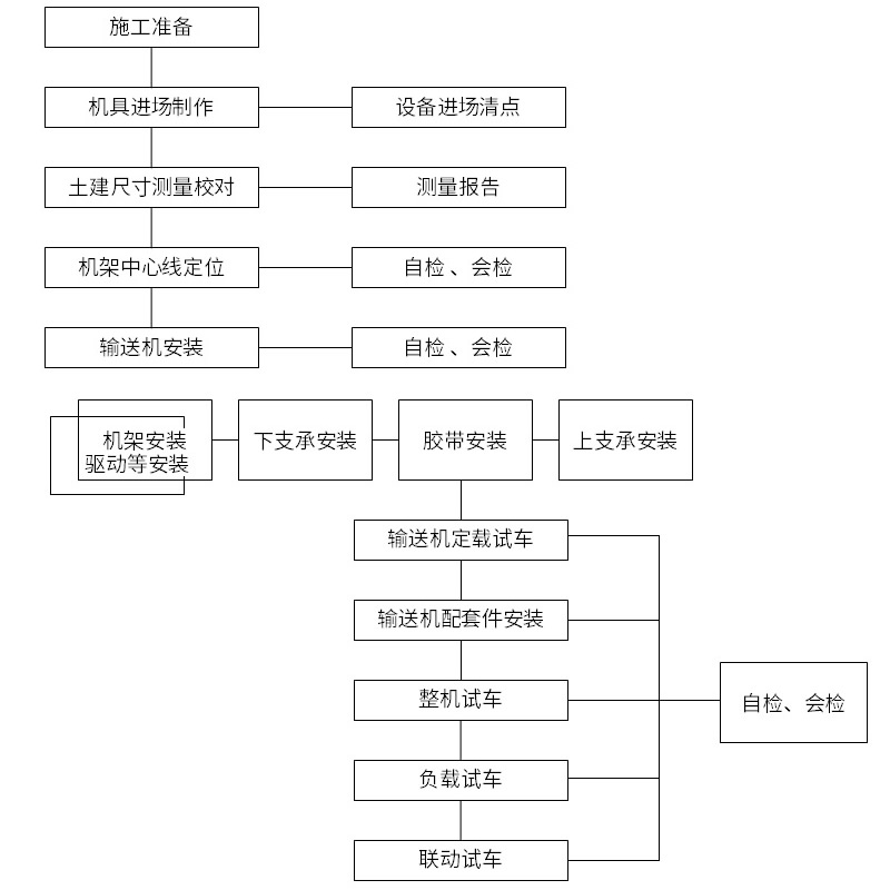 施工班组在完成每个分项工程时,施工员要求和监督施工人员进行质量自检和消缺。在自检完成后,施工员及时进行质量抽检工作,并马上将抽检结果通知施工班组,对不符合质量的部分带式输送机责令有关班组限期消缺。